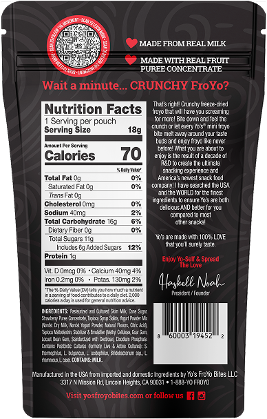 Sweet, Tart and Creamy FroYo with a crispy texture. Made with Real California Milk.